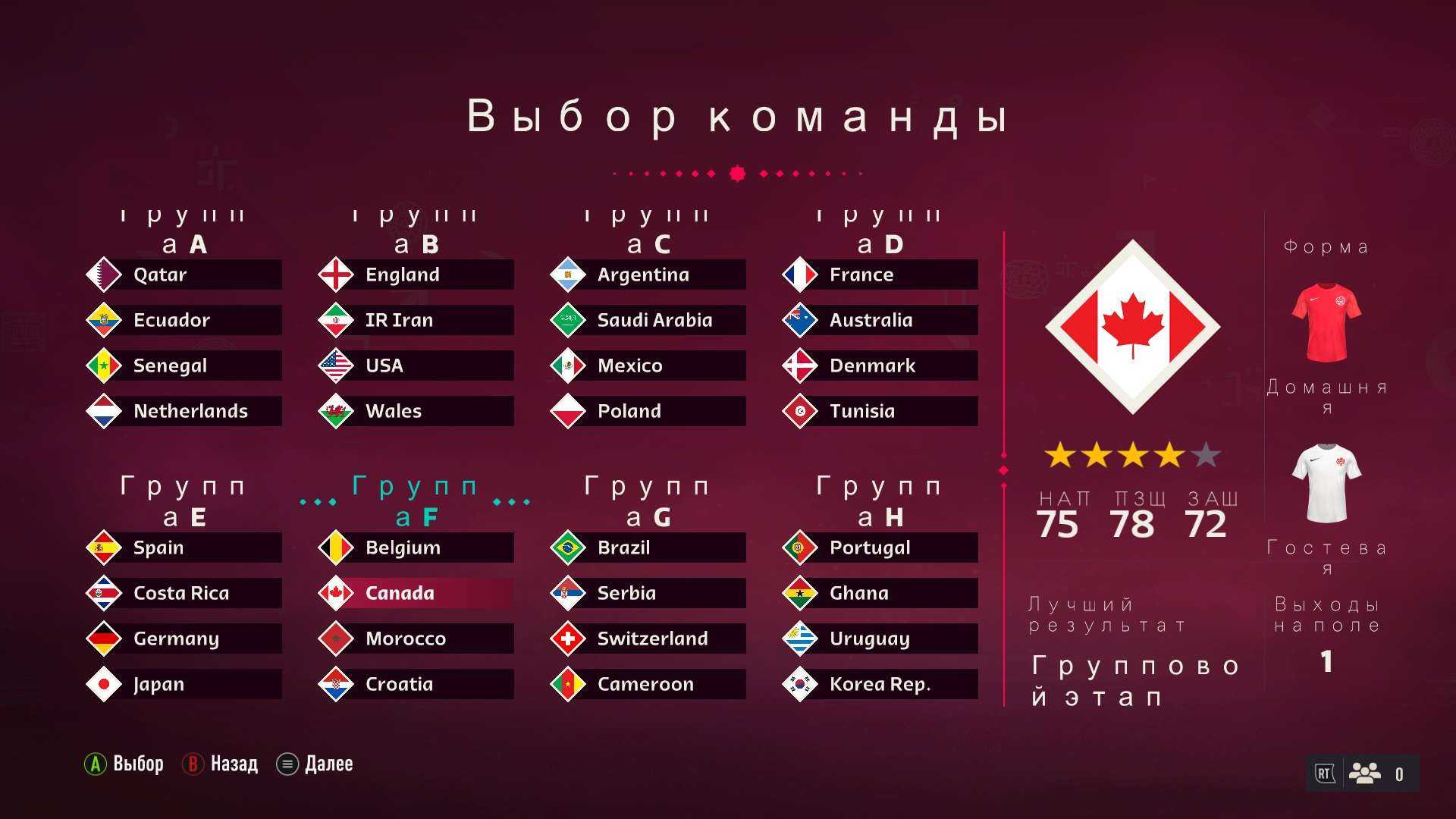 Знакомство с дополнением начинается с заставки ЧМ-2022 в Катаре и выбора любимой сборной. Футболист из базовой команды появится на стартовом экране DLC. В настройках можно изменить любимую сборную и перечитать краткие истории достижений стран на чемпионатах мира.