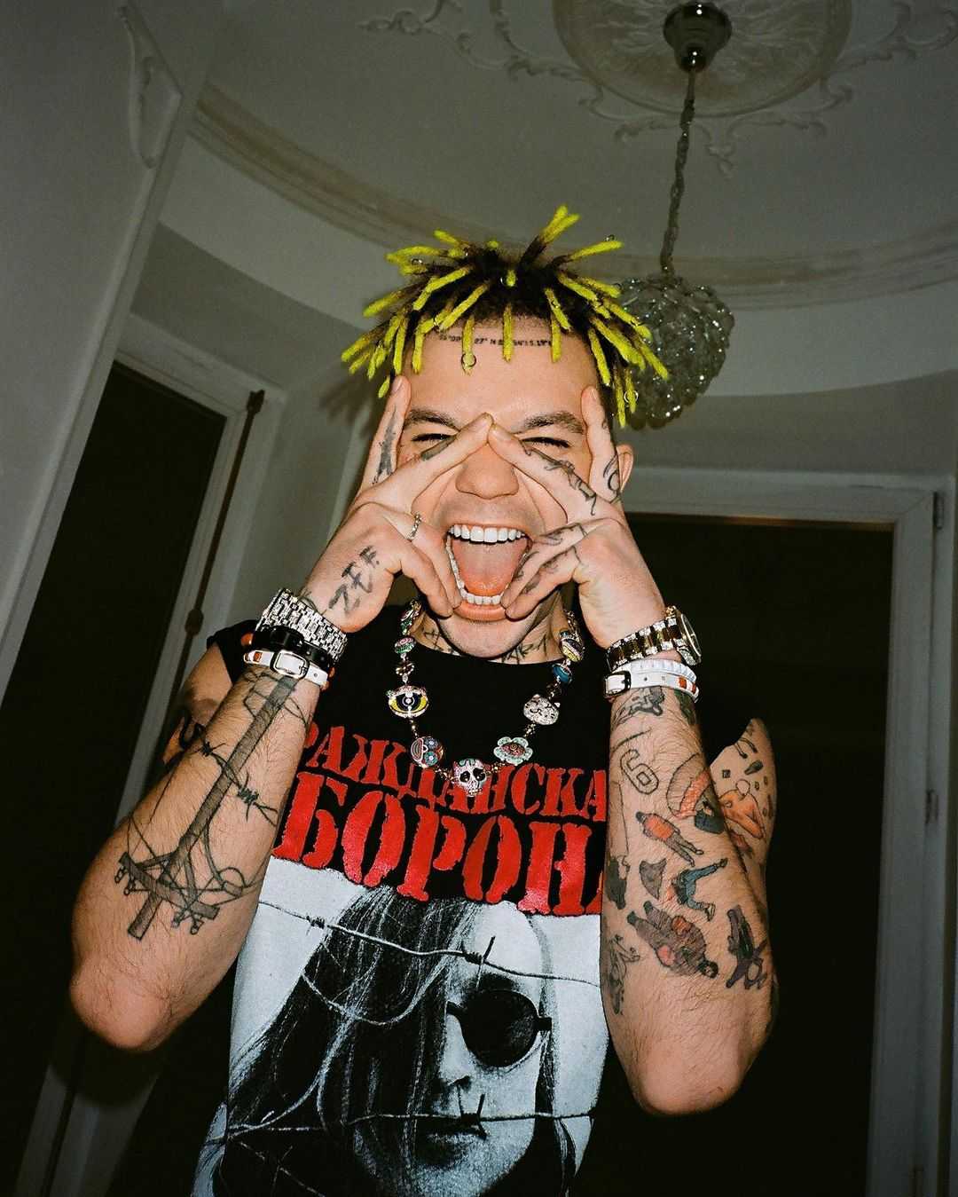 Однако артист не так долго носил зеленый цвет – вскоре его сменил синий, затем черный и, наконец, исполнитель перекрасился в блонд. Прическа все это время оставалась прежней, напоминающей стиль легендарного солиста «Нирваны» Курта Кобейна.