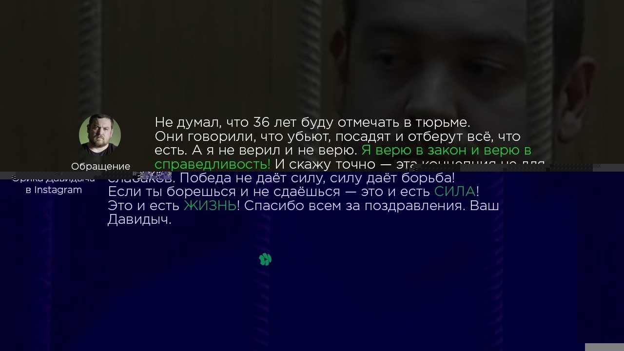 Наконец, московский Дорогомиловский суд вынес «вердикт» (19 октября 2016!), по которому, конечно, автоблогер был признан виновным, наказание обозначено в виде 4 лет 8 месяцев тюрьмы — в версии суда отсидка должна закончиться только в 2021 году, если по ходу дела еще не набросают всяких других дел. И это при том, что сам Европейский суд по правам человека в апреле уже признал незаконным даже сам факт содержания Давидыча в изоляторе и назначил ему компенсацию в 2 тыс евро.