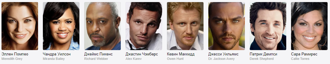 - На протяжении множества сезонов в сериале появлялись новые персонажи и новые актеры, но при этом многие участники так же неоднократно покидали сериал. Одним из последних стал Патрик Демпси (Дерек Шепард), в 2015 году добровольно ушедший из проекта.