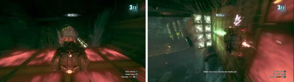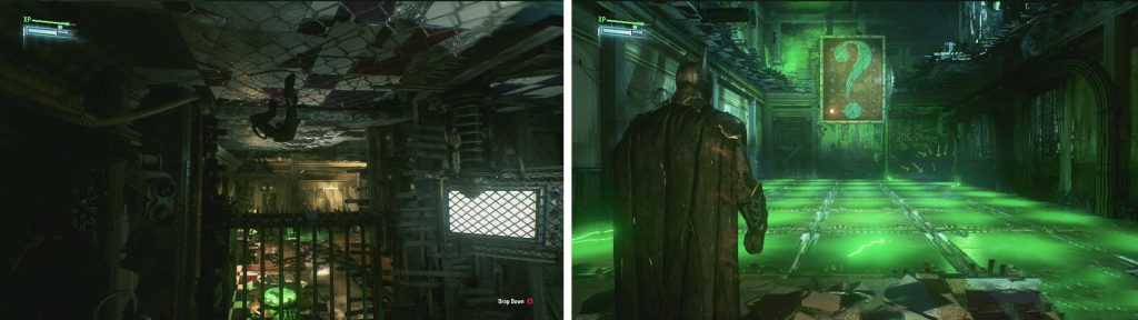 Эта головоломка чрезвычайно короткая, но может быть довольно сложной, если вы немного затрудняетесь с точным контролем способности Бэтмена к скольжению, так как, к сожалению, для решения этой головоломки требуется немного фантазии и точного скольжения.