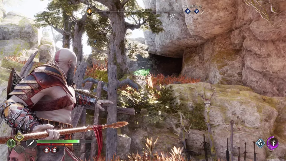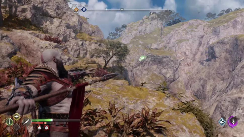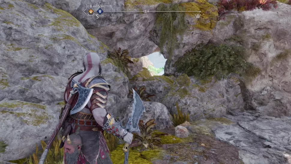 Пройдите короткий путь через ущелье Альбериха, пока не дойдете до участка, открытого для солнечного света — путь впереди также может быть заблокирован золотым металлом, который необходимо взорвать, если вы не были здесь раньше. Ворон в этой области находится на больших камнях слева от тропы. Он будет сидеть рядом с деревом на этих камнях.
