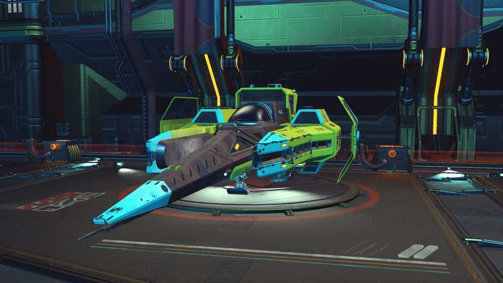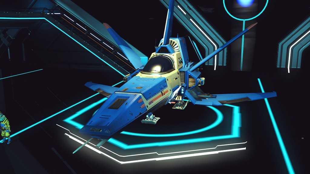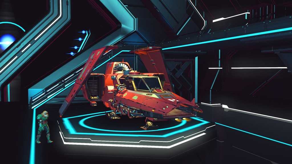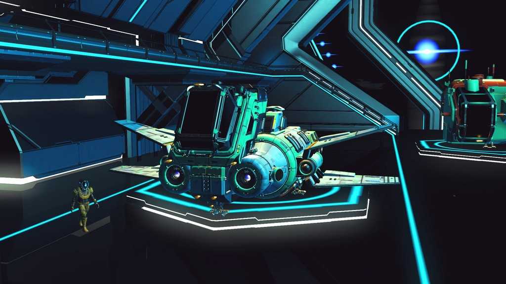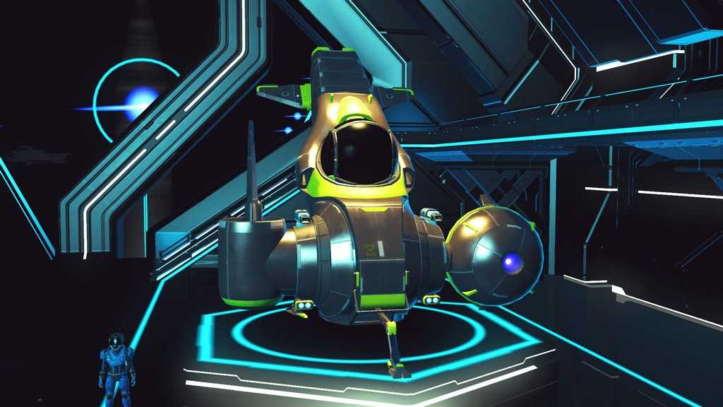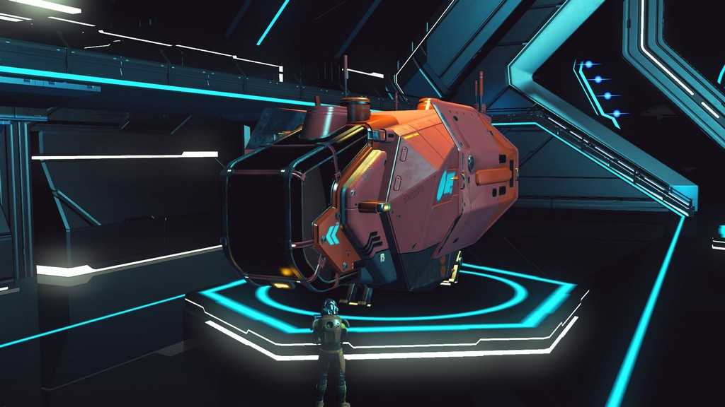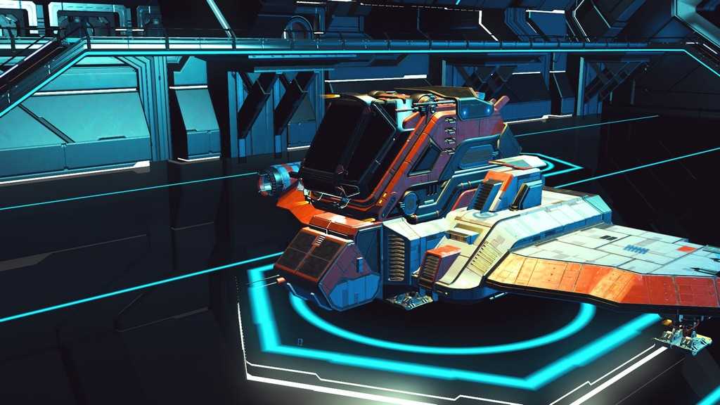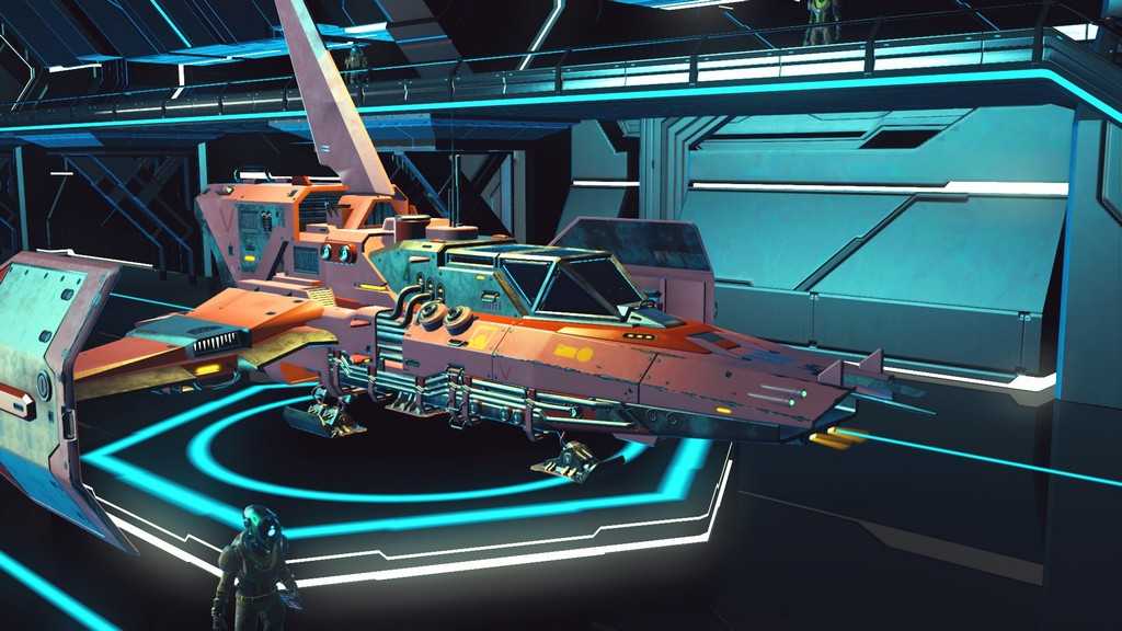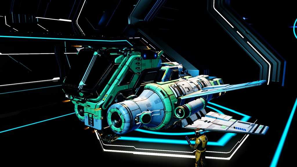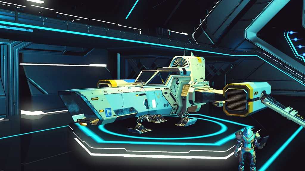Звездолеты в игре генерируются процедурно, как и планеты. Правда, свободы для генерации меньше, так что встретить пару похожих кораблей не составит труда. Все корабли, которыми может управлять игрок — одноместные. Различаются по классам и назначению. К счастью, благодаря обновлению “Beyond” на станциях в терминале корабля (он находится у терминала кастомизации внешности) за кругленькую сумму можно поднять класс своего любимого корабля, а так же увеличить его инвентарь и количество ячеек под технологии.