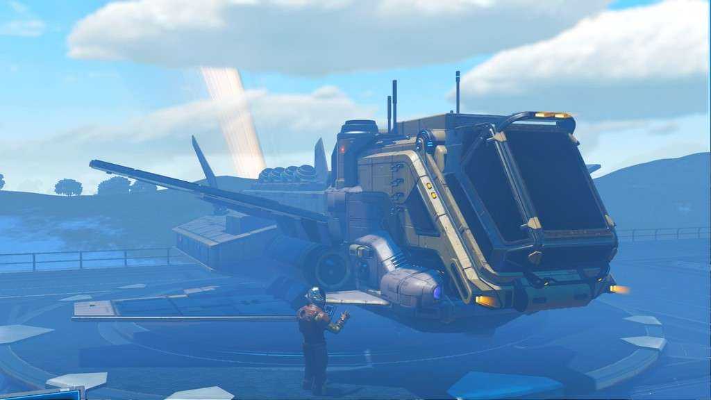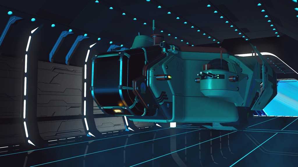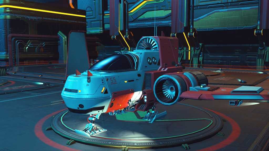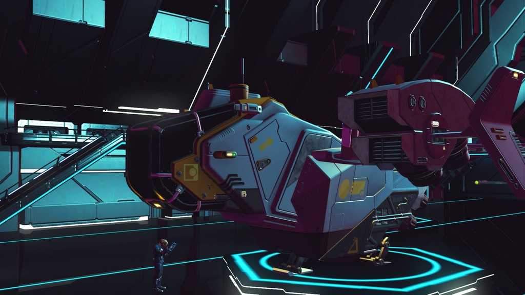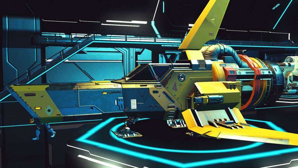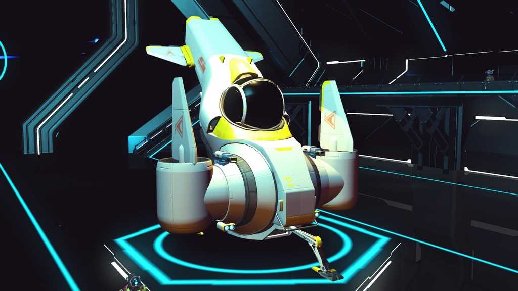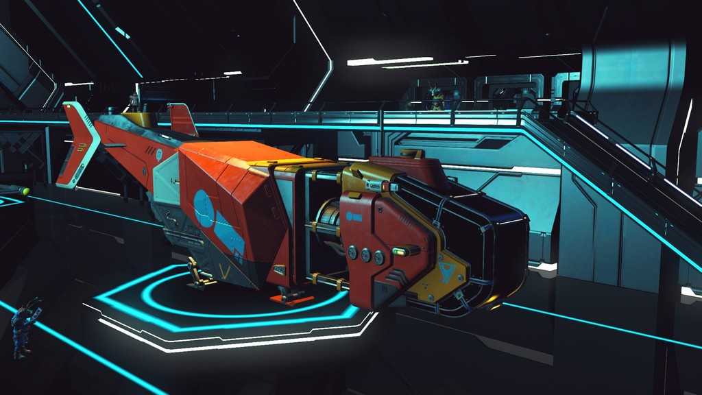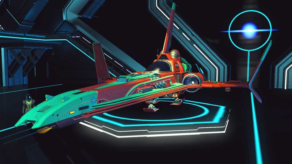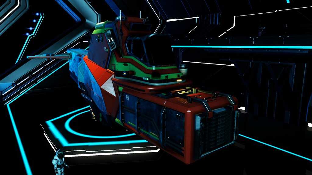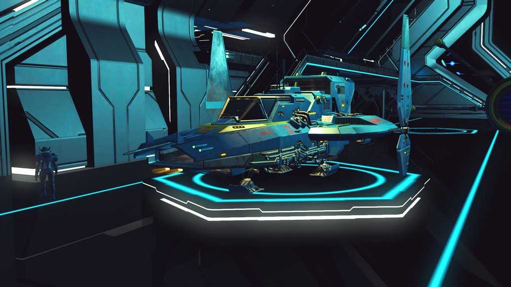 Звездолеты в игре генерируются процедурно, как и планеты. Правда, свободы для генерации меньше, так что встретить пару похожих кораблей не составит труда. Все корабли, которыми может управлять игрок — одноместные. Различаются по классам и назначению. К счастью, благодаря обновлению “Beyond” на станциях в терминале корабля (он находится у терминала кастомизации внешности) за кругленькую сумму можно поднять класс своего любимого корабля, а так же увеличить его инвентарь и количество ячеек под технологии.
