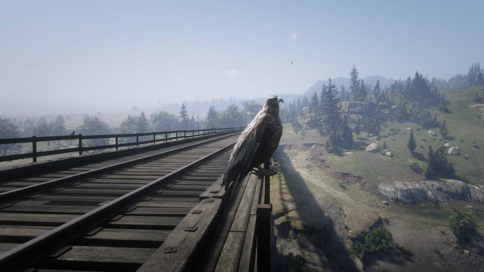 Самый простой способ найти хищных птиц – убить животное/противника и дождаться падальщиков. Другой вариант – приехать на железнодорожный мост к югу от Valentine. В полдень на нем будут сидеть от 1 до 3 нужных нам птиц: гриф, беркут, орлан.