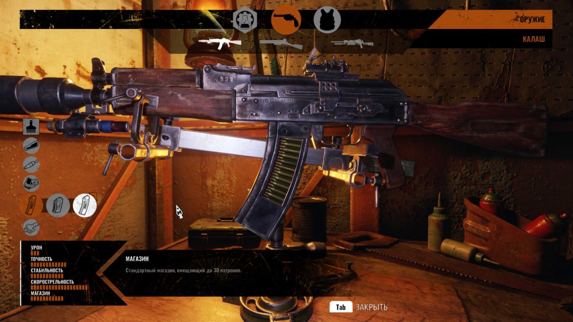 Например, показатель урона — это повреждения, наносимые одной пулей, поэтому, например, у «Калаша» он довольно низкий, как видно на скриншоте выше. А вот дробовик, стреляющий зарядом дроби, наносит большой урон одним выстрелом. Но после этого выстрела дробовик нужно перезарядить, а автомат может вести автоматический огонь, нанося гораздо больший урон в секунду.
