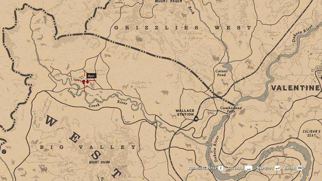 Приезжаем на ранчо Hanging Dog, к западу от Valentine. У ворот будут стоять 2 часовых. Отходим подальше, достаем томагавк и прицеливаемся в противника. Продолжаем сближение, пока точка прицела не станет красной. После этого включаем Меткий глаз, отмечаем цель и метаем томагавк.