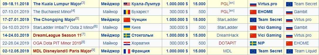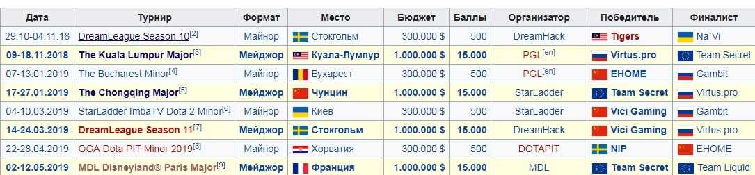 Например, в DPC-сезоне 2018/2019 было проведено 4 Major турнира. В трех финальных поединках оказалась команда Team Secret, столько же у Virtus Pro. Если посмотреть на таблицу очков, там на первой позиции идет именно европейский коллектив. А в сезоне 2017/2018 абсолютным лидером стала команда из России