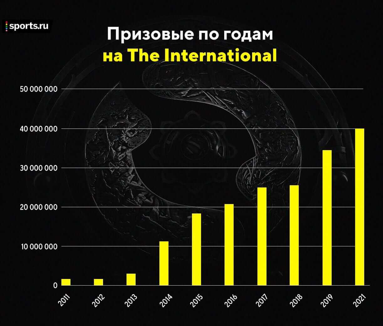 В частности, размер призовых даже в первом турнире «The International 2011» достигал суммы $1,6 миллиона. Тогда как в 2018 году он составил около $25,6 миллионов, а в 2019 году призовой фонд достиг отметки более $34.316.000. На протяжении уже 6 лет часть призовых средств в «Интернешнл Дота 2» формируется посредством краудфандинга.