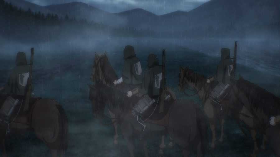 - Эрен, Армин и Микаса решают присоединиться к Исследовательскому корпусу.