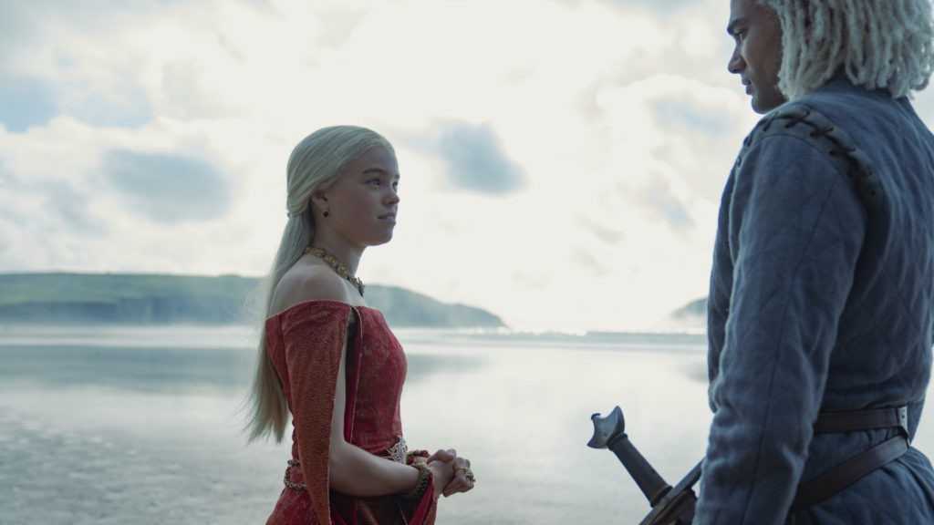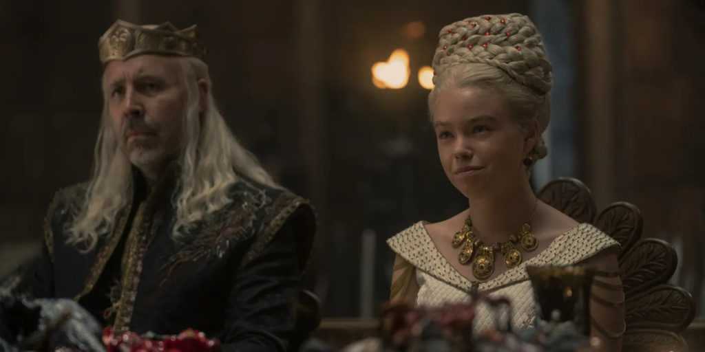 Нам также показывают ключевой момент в сюжетной линии Дома Дракона: неоднозначный момент, когда принцесса Рейнира Таргариен становится преемницей Железного Трона.