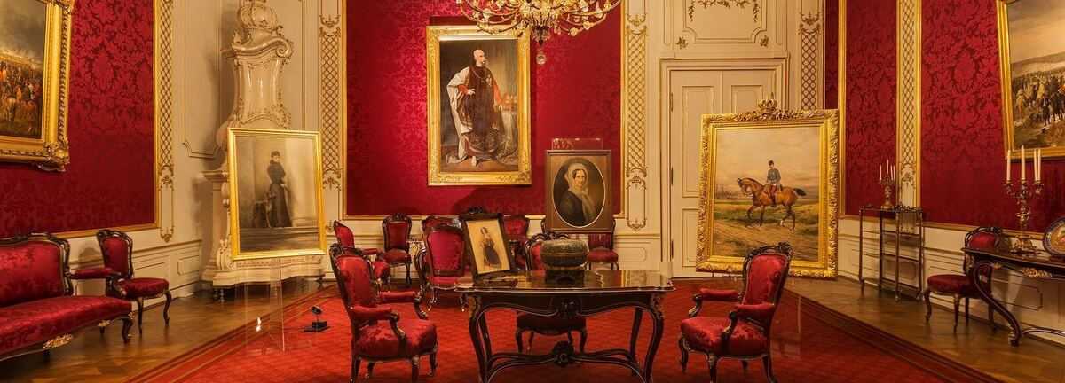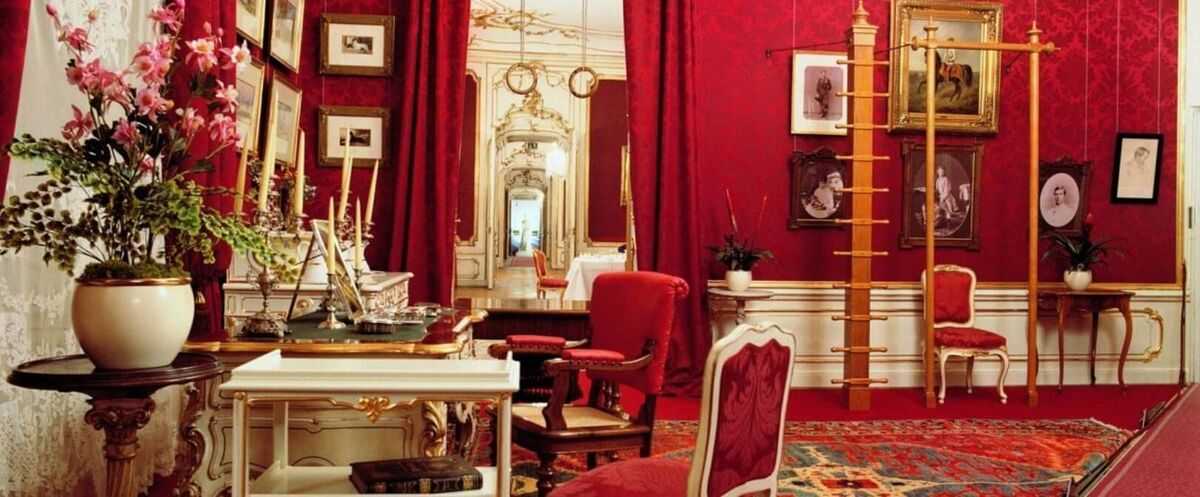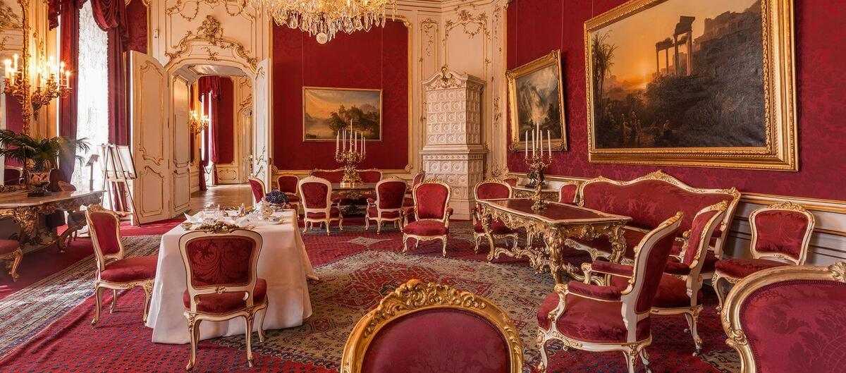 Во времена Елизаветы в ее покоях преобладал любимый сиреневый цвет, который впоследствии заменили на малиновые императорские шелка Габсбургов.