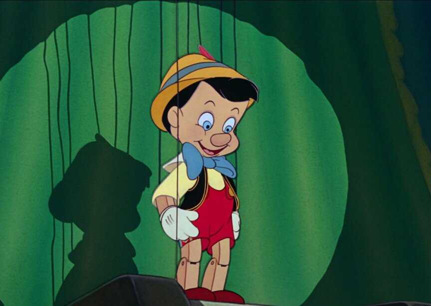 В оригинальной версии Карло Коллоди 1881 года, Пиноккио был приносящей трудности маленькой куклой. Намерением писателя было проучить молодых детей, которые плохо себя вели, и показать, к каким последствиям это может привести. В рассказе Пиноккио убивает сверчка Джимини. Он бросает в него молоток, после того как сверчок сказал возвращаться домой. Пиноккио скажет Джеппетто, что он не жалеет и Джимини это заслужил.