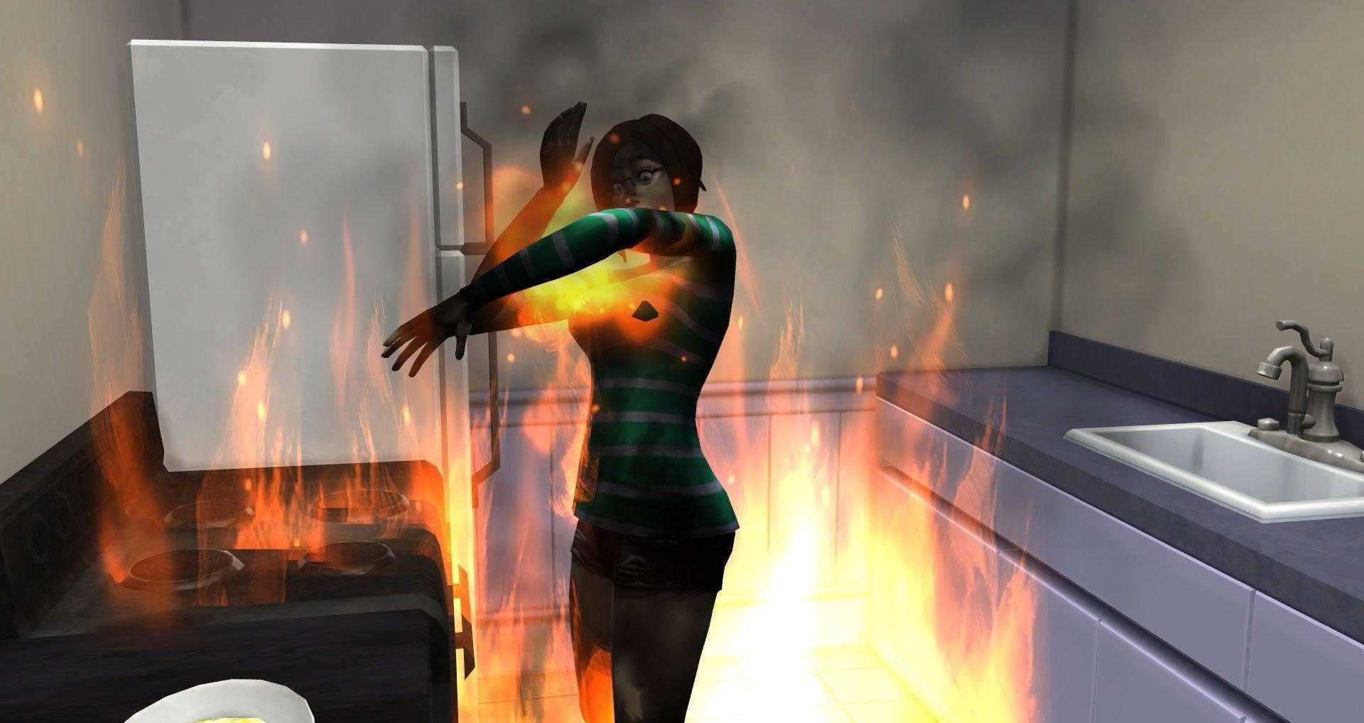 Чаще всего такая участь настигает персонажей на низких уровнях готовки, когда они пытаются что-то приготовить на кухне за печкой. Огонь получается слишком большой, пламя перебрасывается на соседнюю технику и мебель. В общем пожар вспыхивает быстро и не оставляет в живых никого, кто находится рядом.