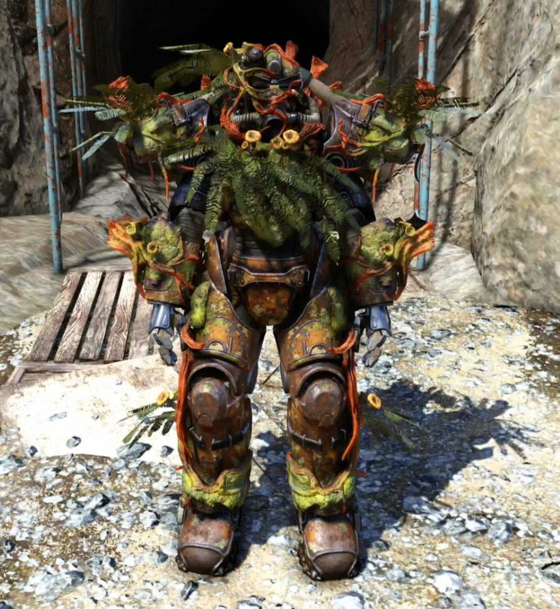 Набор ультрацитовой силовой брони, который в убежище 94 под воздействием ГЭКК был изменен лозами душителями и другой флорой.
