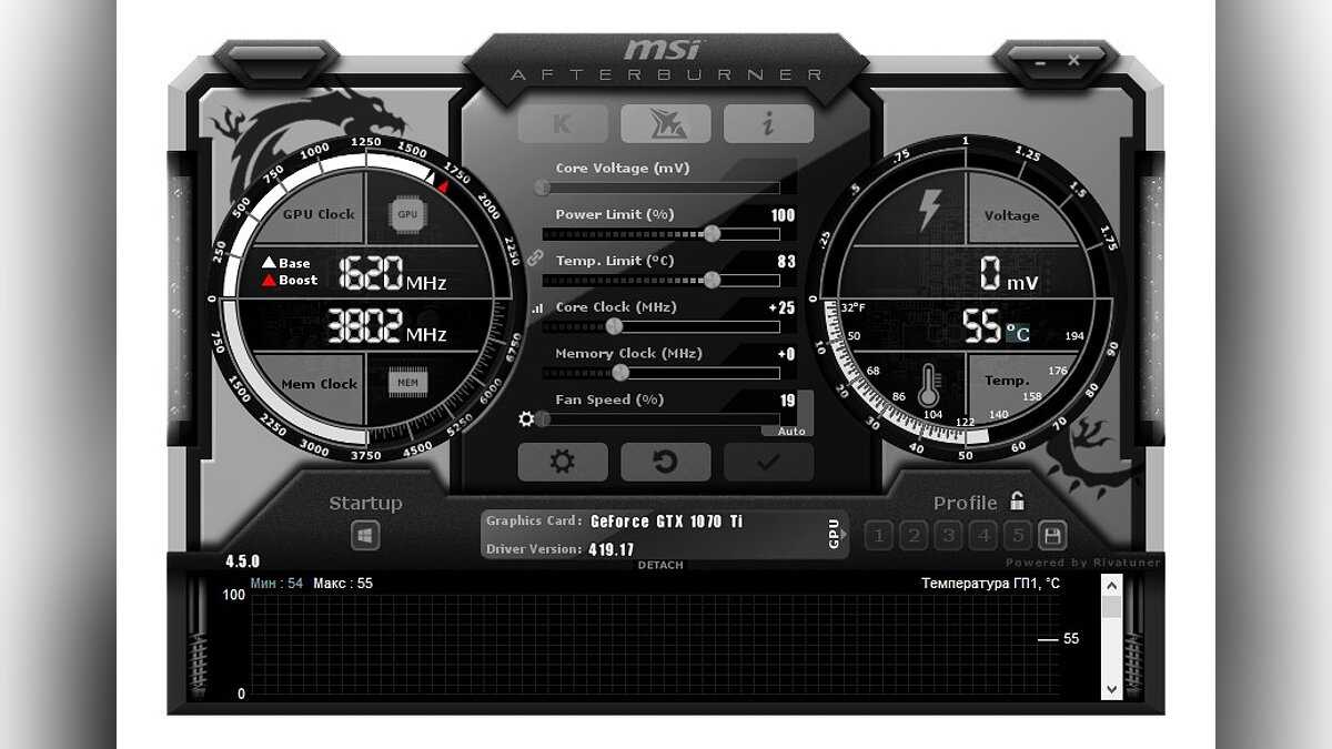 Если программы от производителя нет, то всегда можно воспользоваться универсальным решением — MSI Afterburner. Это одна из лучших программ для разгона, в ней множество разных настроек.
