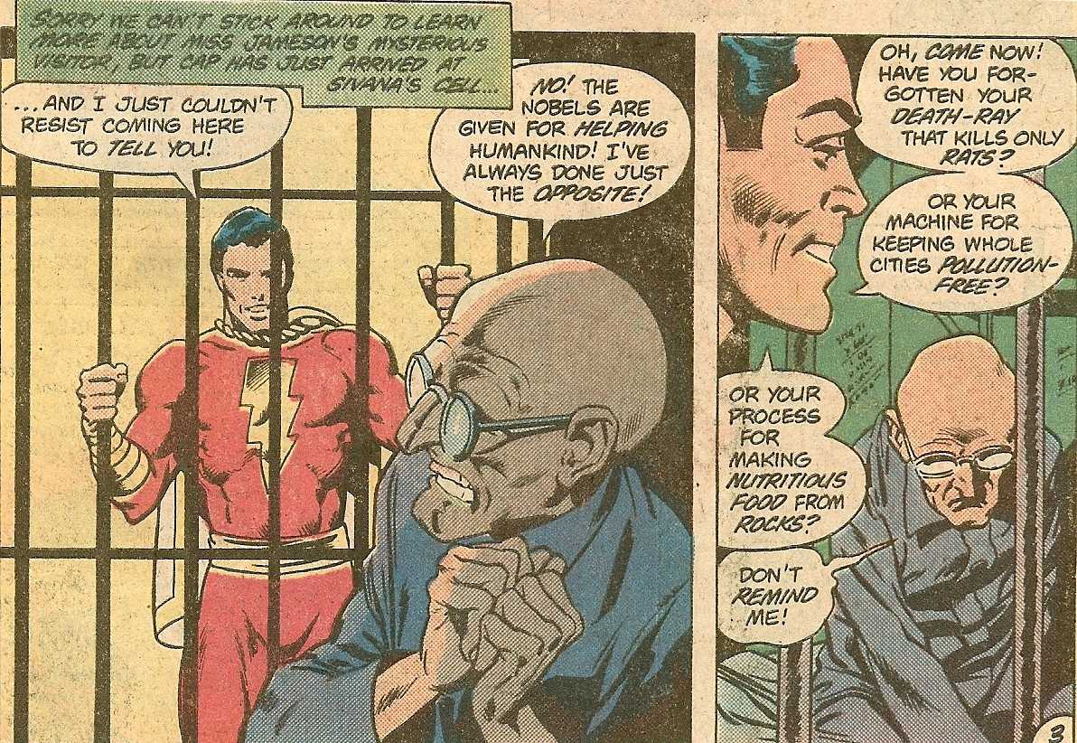 В ранние годы длинные истории про персонажей не были особо популярны, поэтому в каждом выпуске было отдельное приключение героя. Авторы Капитана Марвел пошли по немного другому пути: в каждом номере было одно приключение, но все они были связаны неким Обществом Зла. Напомню, что это было задолго до Зловещей Шестерки и Лиги Несправедливости. Так вот, авторы тянули интригу целых 2 года, за которые показали множество злодеев, объединенных одним злым гением: Мистером Разумом (Mr. Mind). Однако, когда пришло все-таки время раскрыть главного злодея, выяснилось, что авторы сами не знали, кто это. Как они вывернулись из ситуации? Как минимум неожиданно: им оказался червяк, которого в одном из выпусков Билли сбросил со своей рубашки. Да, просто червяк, который обладал телепатией и мог разговаривать. Я до сих пор нахожусь в небольшом шоке от этого факта.