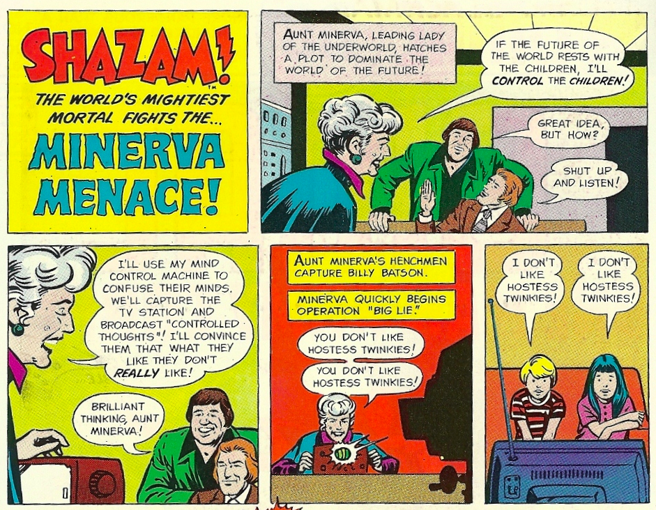 Вполне возможно, что вы не увидели тут ничего необычного. Хорошо, а что если я скажу вам, что одним из главных врагов Капитана Марвел была маленькая старая бабушка? Тетя Минерва была старухой, которая правила подземным миром и держала его в ежовых рукавицах. Примечательно, что одной из главных ее мотиваций был поиск нового мужа, ведь предыдущие пять у нее скончались. Славные деньки Золотого Века Комиксов.