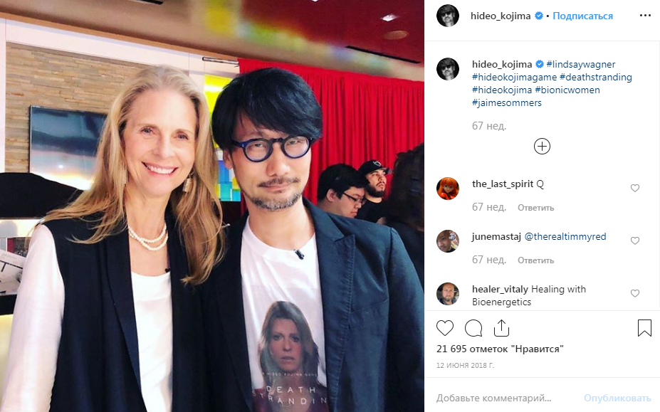 Линдси Вагнер и Хидео Кодзима. Инстаграм: https://www.instagram.com/hideo_kojima/