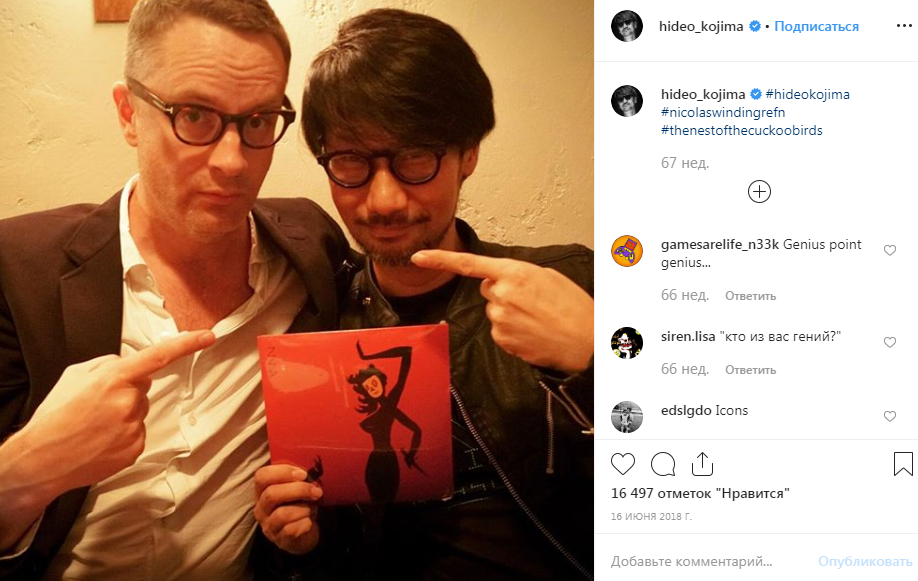 Николас Рефн и Хидео Кодзима. Инстаграм: https://www.instagram.com/hideo_kojima/