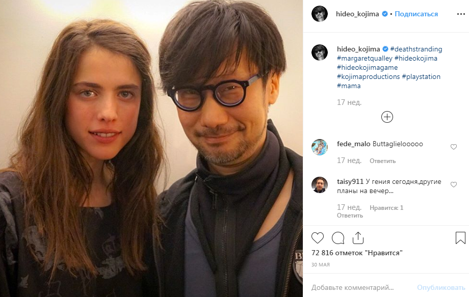 Маргарет Куэлли и Хидео Кодзима. Инстаграм: https://www.instagram.com/hideo_kojima/