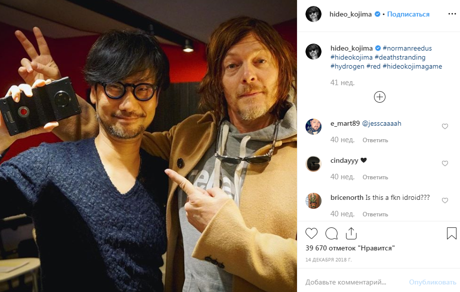 Хидео Кодзима и Норман Ридус. Инстаграм: https://www.instagram.com/hideo_kojima/