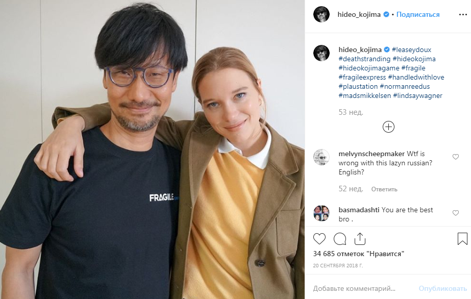 Хидео Кодзима и Леа Сейду. Инстаграм: https://www.instagram.com/hideo_kojima/