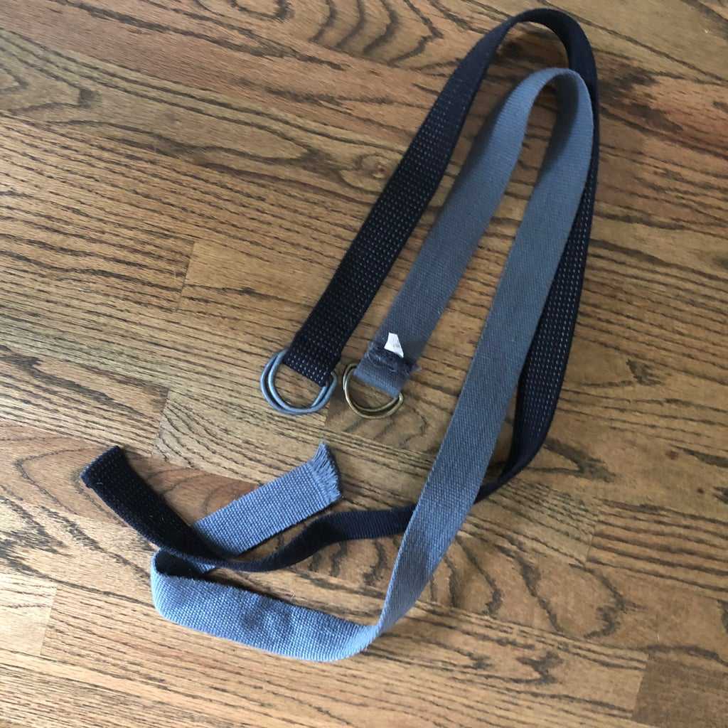 2 Belts — I used 2 matching fabric belts that we already owned (from cargo shorts). Any belts will be fine as long as they have enough extra belt to hang down when buckled. And they have to be the same style — they can be different colors.