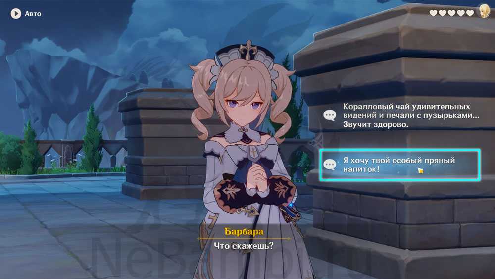В благодарность она хочет угостить напитком. Выбираем «Я хочу твой особый пряный напиток!»: