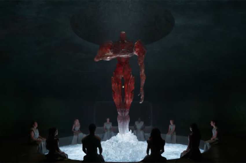 В серии потрясающих визуальных моментов Серси Джеммы Чан идет по фантастическому пещерному коридору. В первой комнате стена из переплетенных треугольников ведет к двери, внутри которой она находит странное растение, излучающее яркий свет. Ее прикосновение заставляет свет быстро распространяться по всей стене. Треугольный мотив предполагает, что эти кадры могли быть установлены внутри корабля Вечных. Если это так, это светящееся дерево доказывает, что технология Вечных частично является биологической по своей природе — и если бы они поделились этой технологией с человечеством, глобального потепления не было бы.