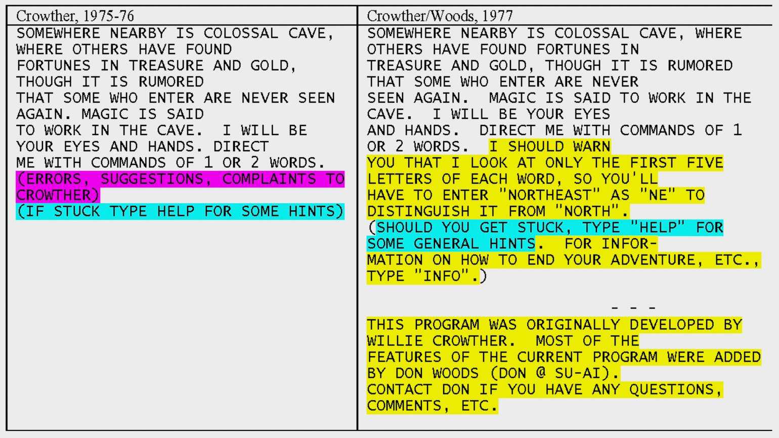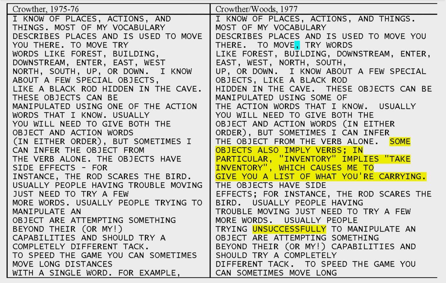 Примеры различий текстового содержания Adventure и Colossal Cave Adventure. Скриншоты: Dennis Jerz / Semantic Scholar