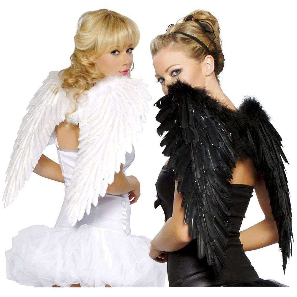 Демоница в красно-черном наряде с рожками и острым хвостиком, с трезубцем и характерным макияжем может составить конкуренцию на празднике милому ангелу, наряженному в белые нежные одежды, с пушистыми крылышками и нимбом. Оба образа выглядят смело и эффектно. Если девушка собирается на праздник с подругой, можно составить классный тандем и прийти парой.
