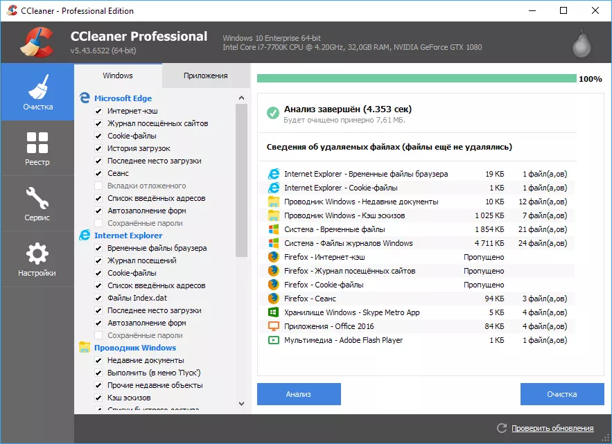 Скачайте CCleaner, запускать можно после закрытия других приложений, нажмите кнопку Анализ, утилита просканирует компьютер. После анализа нажимаем Очистка, однако, почистив кэш браузера – пароли от сайтов придется вводить заново.