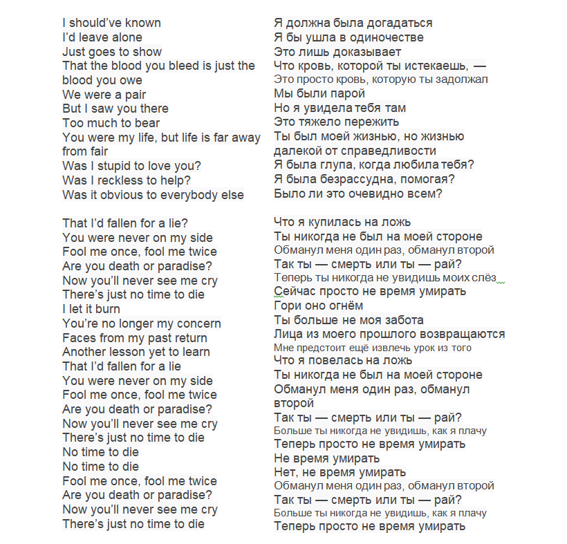 Слова и перевод песни «No Time to Die» Billie Eilish