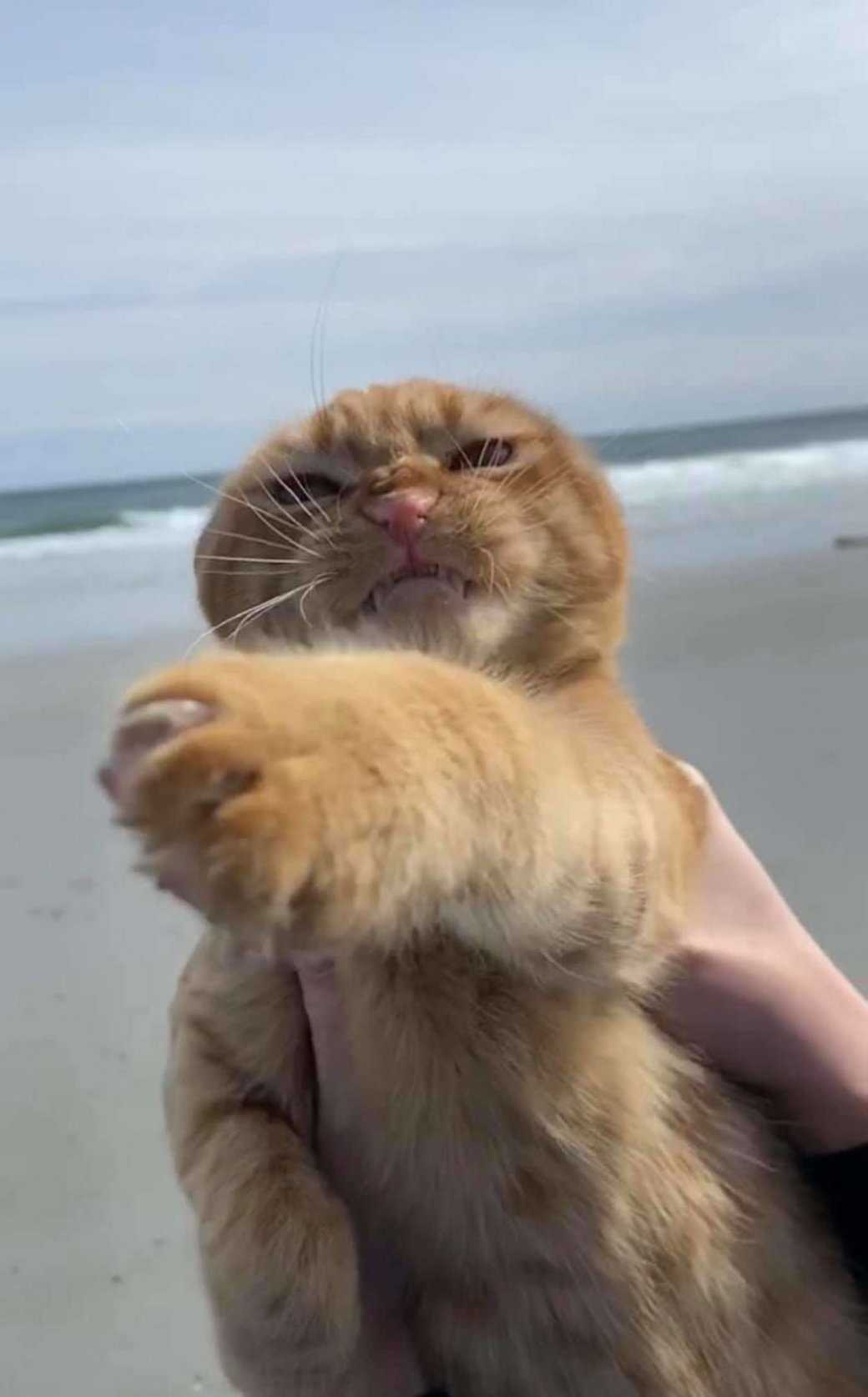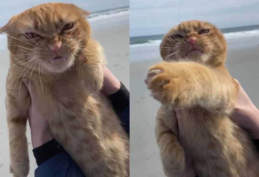 Историей Тыковки поделился портал The Dodo. По словам хозяев кота, в первые минуты прогулки он выглядел совершенно счастливым, изучал пляж, бегал и прыгал. Все изменилось, когда с моря подул ветер. Бриз вызвал у Тыковки неприятные эмоции, которые в полной мере отражены в выражении его мордочки.