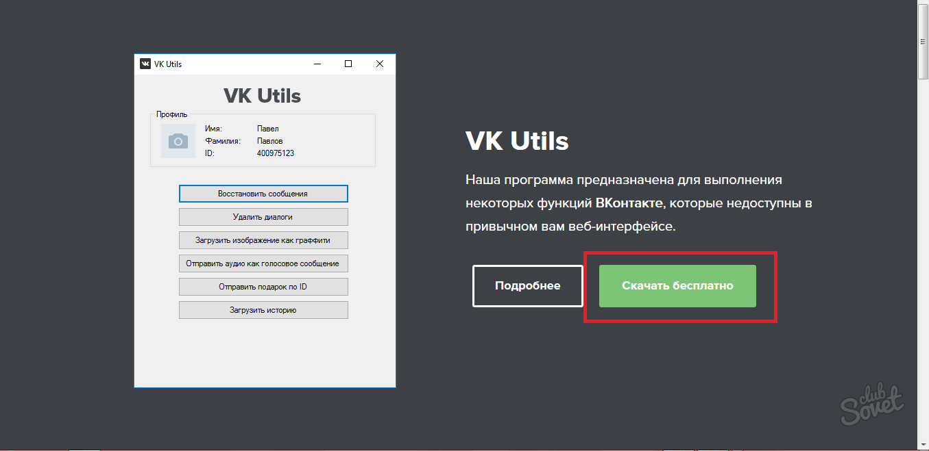 Зайдите на сайт http://vk-utils.ru и скачайте программу.