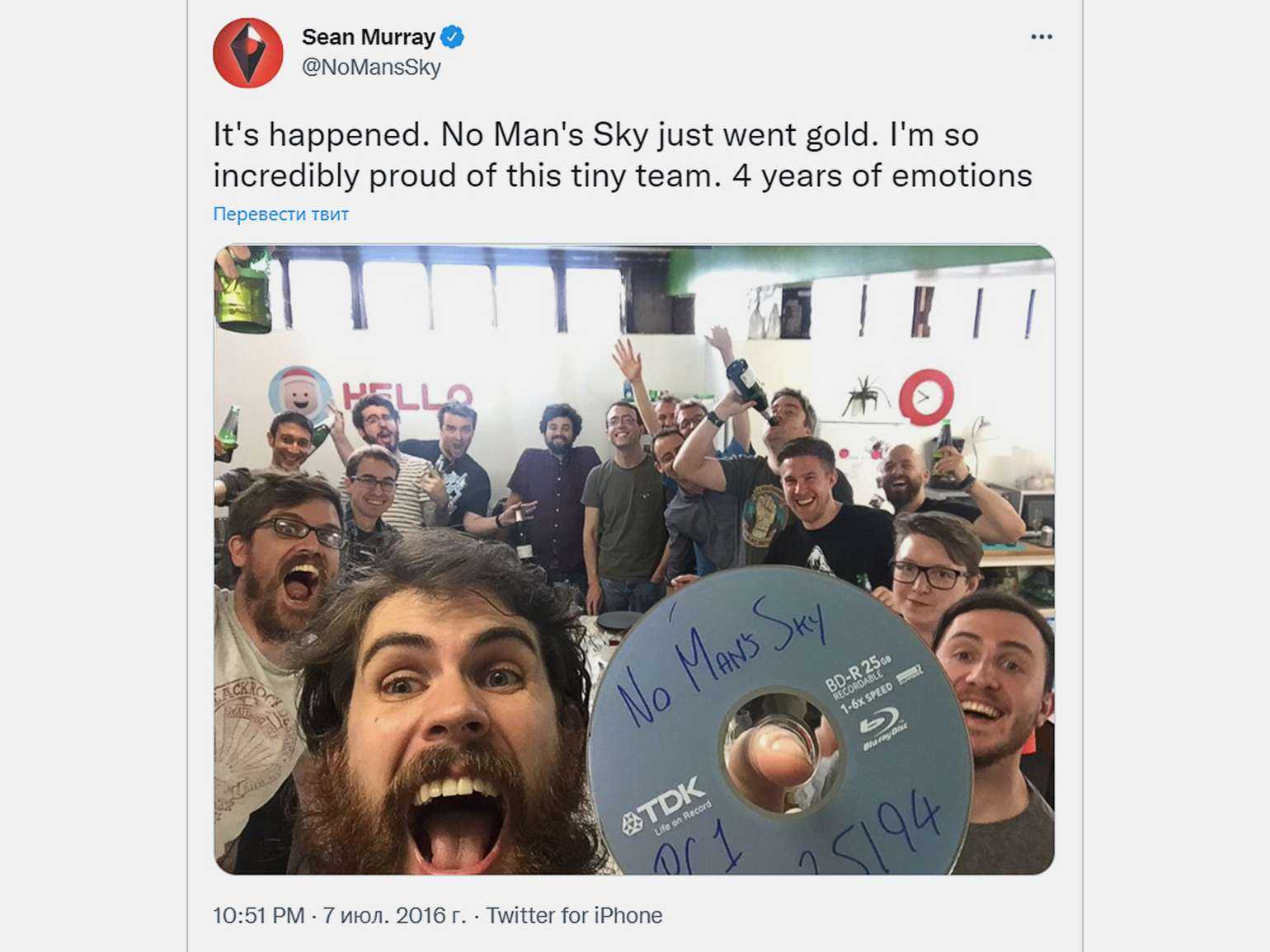 Сотрудники Hello Games празднуют уход игры на золотоСкриншот: страница Шона Мюррея в