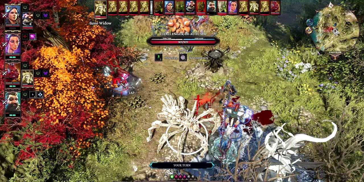 Скриншот с сайта CrazyCatDev на YouTube Каждое из этих существ обладает элементальным иммунитетом, соответствующим элементу, который был использован для их пробуждения. Каждый из них 14-го уровня, и они представляют собой вызов даже для богорожденных, которые соответствуют их уровню. Сами Герои в конце каждого хода будут баффать претендентов