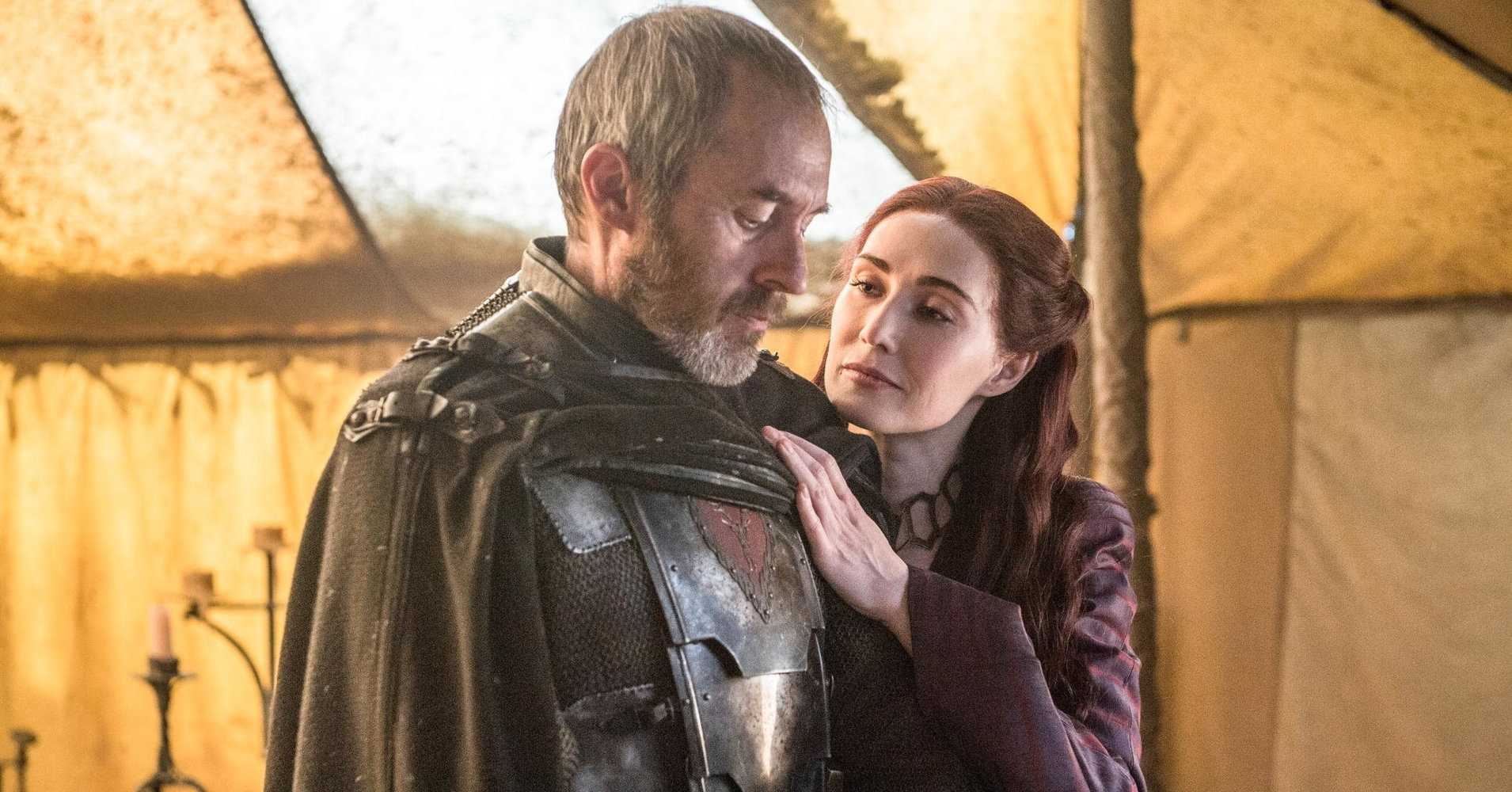 Станнис зализывает раны на Драконьем Камне и обвиняет в своем поражении Мелисандру. Он едва не теряет веру во Владыку Света, но красная жрица его быстро переубеждает.